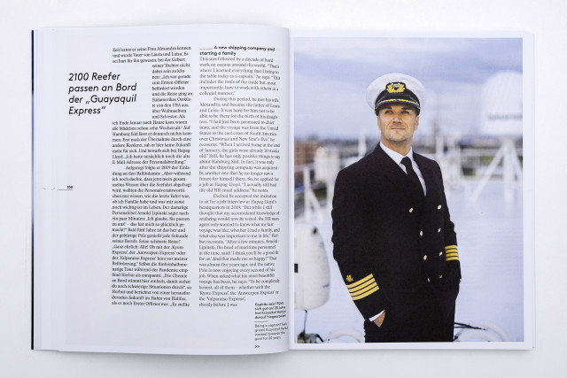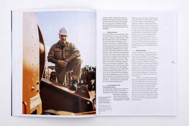 Für die dritte Ausgabe des Kapitänsbuchs der Reederei Hapag-Lloyd habe ich die Guayaquil Express zusammen mit Autorin Ulrike Fischer von Hamburg nach Antwerpen begleitet und dabei nicht nur den Kapitän Krzysztof Herbut porträtiert, sondern auch den Alltag der gesamten Crew an Bord dokumentiert. Hier ein kleiner Auschnitt daraus.